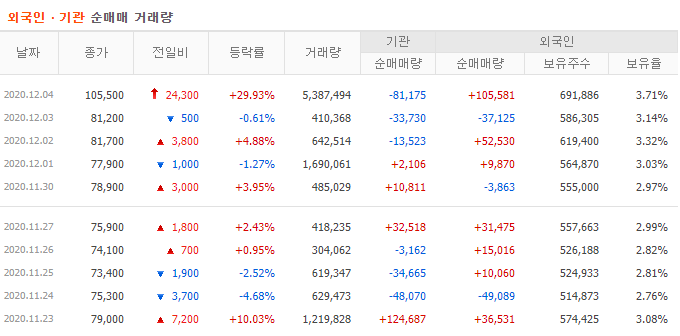 기관과 외국인의 매매동향을 아래에서 알아보자