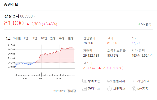 2021년도에도 삼성전자의 주가가 10만원까지 올라갈 것이라는 예상도 있다.