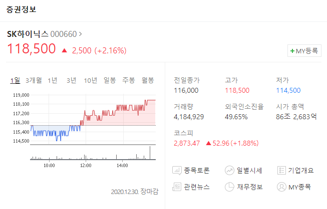 더불어 D램의 고정 가격 상승 시점이 1분기 중반으로 앞당겨지며 실적 전망치에 대한 눈높이 또한 높아졌다고 한다.