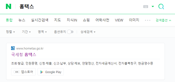 검색창에 홈택스를 검색해서 '국세청 홈택스' 홈페이지에 들어간다.