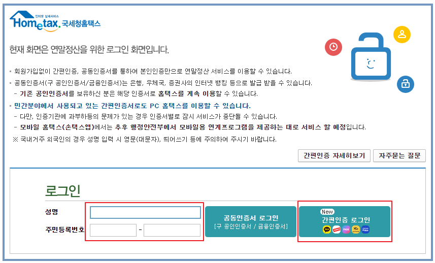 연말정산 간소화서비스는 로그인이 필요한데, 기존에는 공인인증서가 필요했지만, 지금은 공동인증서와 더불어 은행이나 카카오톡, PASS 앱을 통한 비교적 쉬운 간편인증 로그인 방법이 도입되어 많은 사람들이 연말정산을 할 때 공인인증서로 당황하는 일이 비교적 사라지게 되었다.