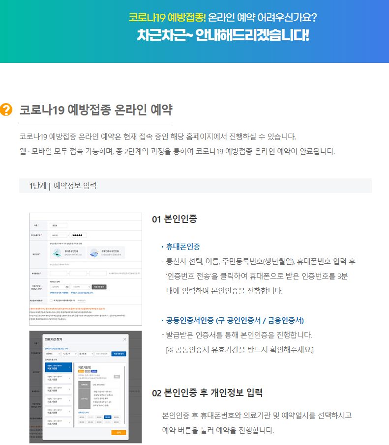 백신 접종 예약 방법은 쉽게 2단계로 나뉘어진다.